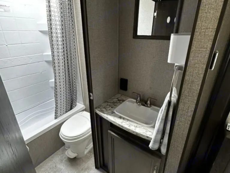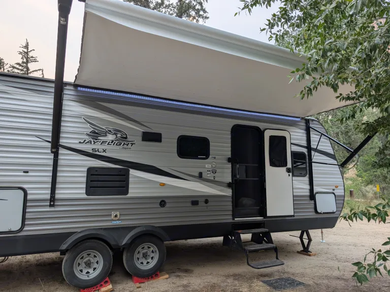 Ready to make unforgettable memories? Whether you're planning a weekend getaway in the mountains, a lakeside retreat, or a cross-country road trip, our Jayco Jay Flight 267Bhsw is your family's perfect home on wheels. This trailer combines comfort, space, and simplicity—without the stress.With a spacious layout, private queen bedroom, double-size bunks, and convertible dinette and sofa, it comfortably sleeps 8-10. Ideal for families, friends, or anyone who wants a clean, cozy basecamp after a day of exploring.Why You’ll Love It:Family-Friendly Bunkhouse Layout – Double-over-double bunks perfect for kids or adultsPrivate Queen Bedroom – Enjoy quiet nights and your own spaceFull Kitchen – Microwave, stove, oven, large fridge/freezer, and cookwareCold A/C & Warm Furnace – Comfortable in any seasonElectric Awning – Instant shade and outdoor hangout spaceBluetooth Stereo with Indoor/Outdoor Speakers – Bring the vibes anywhereLarge Slide-Out – More living space where it countsTV + DVD Player – For family movie nights or downtime on rainy daysIndoor & Outdoor Showers – Rinse off after a hike or lake dayKeurig Coffee Maker + Frother with coffee pods and hot chocolate included!Ce qui est inclusWeight distribution hitch + sway control (included for safe towing)Fresh linens and pillows for queen.Pots, pans, mixing bowls, disposable utensils and plates, mugs, garbage bags, paper towels, and broomCoffee pods and hot chocolateSewer hookups, fresh water hookups (wirh pressure valve), electrical hookups (with 50' extension and surge protector)Setup walkthrough + towing help if neededHave a special request or needs? Just ask!RecommandationsThis trailer is perfect for:National Park adventures (Zion, Bryce Canyon, Yellowstone)Family campouts at state parks or lakesCouples weekends or reunion getawaysLakefront or desert boondocking with room to stretch outCross-country road trips—comfort without the hotel costsNew to RVing? We’ve got you covered! We’ll walk you through how everything works to leave you confident when you hit the road.Autres points à signalerNo Smoking or Vaping Inside