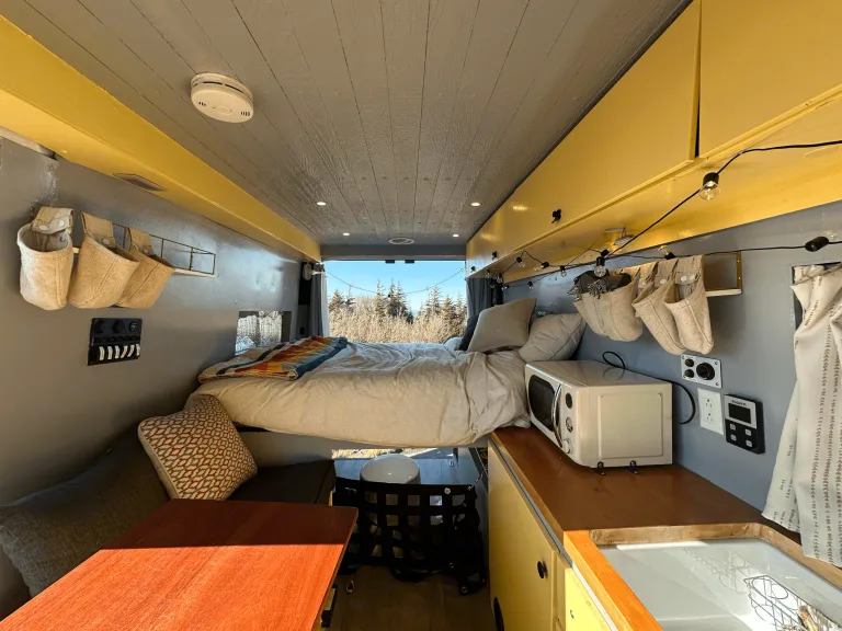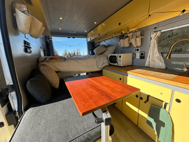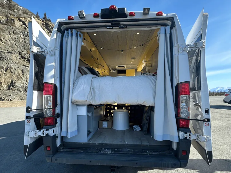 Sockeye is a 2018 Promaster, that features a kitchenette, queen size bed, portable toilet, large garage, power inverter, fresh water tank/grey water tank, and solar panels to ensure you have power wherever you go. In the rear of the van there is also a sprayer to rinse off all your gear after a day of adventuring. It is on the shorter side of our vans, making it easy to maneuver and provides excellent millage per gallon.Ce qui est inclus• Sheets/Pillows