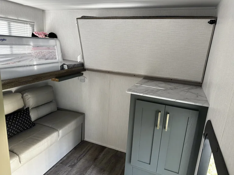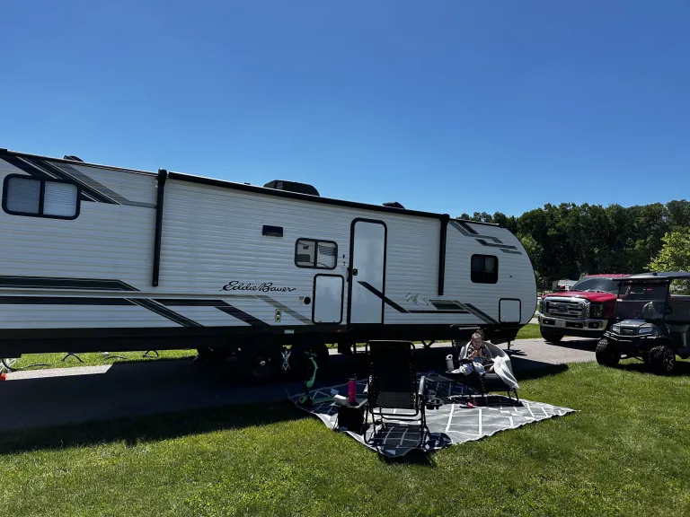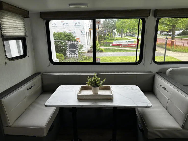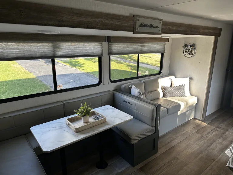 Welcome to Glamping & Grace: The Roamstead – Your Farmhouse-Chic Getaway on Wheels!Step inside The Roamstead, a beautifully styled Eddie Bauer 322BHC that feels more like a tiny Hgtv dream cottage than a camper. With its vintage farmhouse charm, neutral tones, cozy textures, and curated personal touches, this glamper is designed to feel like your favorite home makeover show brought to life—just on wheels.Whether you’re sipping morning coffee under the awning or curling up with a book after a day of exploring, The Roamstead wraps you in comfort and style. Every detail is intentionally chosen to create that “home away from home” feel—minus the renovation dust!What’s Inside: