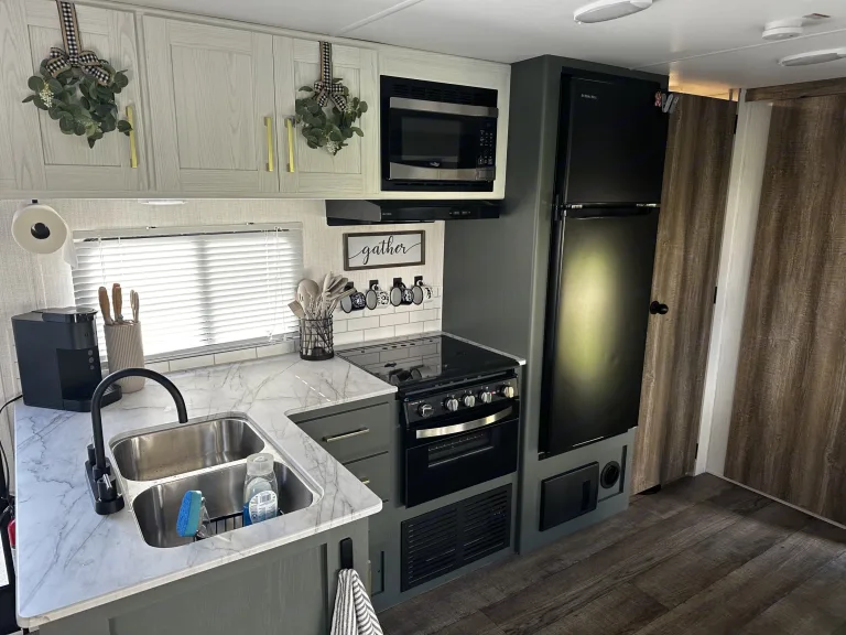 - Perfect setup for morning coffee or evening smore's over the campfire with twinkle lights and fresh air (smore's sticks included, because they are a camping necessity!)From the modern rustic finishes to the thoughtful extras, this isn’t just a camper—it’s a cozy country cottage on the go. Whether you’re glamping in style at a national park or parked lakeside for the weekend, The Roamstead is your perfect basecamp for memory-making.Let the road lead you home—wherever you’re headed.