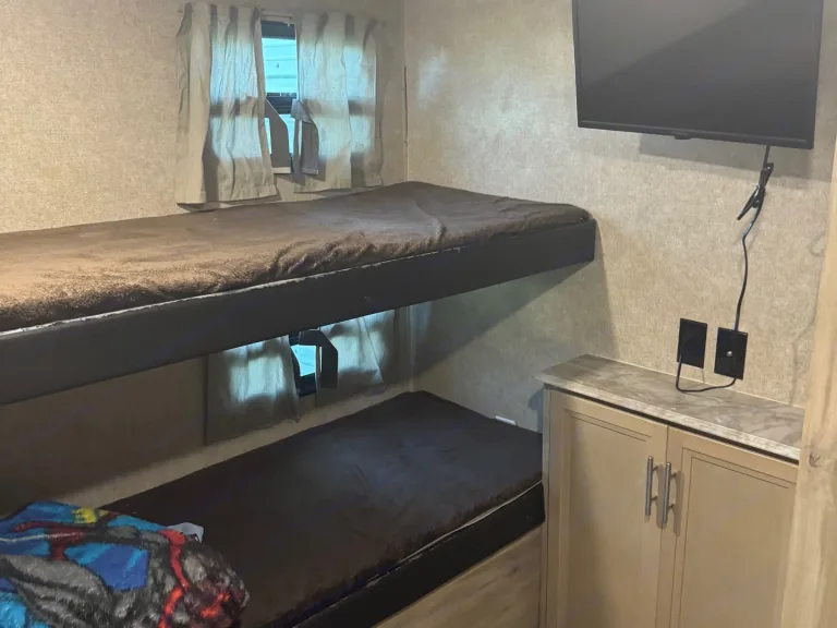 Our camper is ready for your group or family to enjoy. I will deliver and set up the camper at your desired location (within an hour drive of Arnaudville, la). In the camper you will find a bunkhouse in the rear with it's own AC unit, large kitchen with island, booth that converts to a bed which comfortably sleep two adults, fold down couch in the living area, large shower in the bathroom, and a queen bed in the master bedroom. There is an electric awning to help hide from the summer sun when outside. Also outside you'll find a mini fridge and a sink (we always kept a few beers in the outside fridge to limit trips up the steps!). I will provide a gas cook top, propane bottle and two folding chairs for extra outside entertainment. Two tv's are in the camper and there is a radio/cd player which of course is bluetooth capable and plays inside, outside or both.