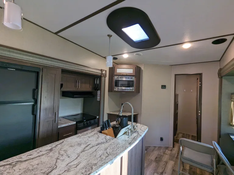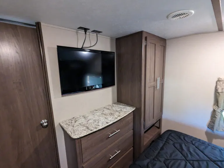 The One Less Traveled is a fun camping experience for the whole family! This all inclusive 5th wheel will allow you to enjoy more of the adventures with your family instead of the RV. Linens are provided for all beds, towels are available for the shower, coffee maker, cooking utensils, dinnerware, and silverware are all included. All you have to bring is yourselves, some food, and of course clothing. Every TV is a smart TV so hook up your personal hotspot and enjoy streaming your favorite shows!Ce qui est inclusAs mentioned before, the following items are included in your experience. All items supply a family of four to five: