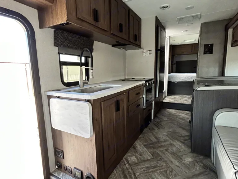 Hey there, road trip dreamer! Ready to hit the open road without the stress of an old RV leaving you stranded? Jump into a shiny new rig that’s fuel-smart, family-friendly, and packed with all the cozy vibes of home—perfect for outdoor lovers like us who want adventure *and* comfort!This beauty’s got you covered, whether you’re going off-grid or plugging in at a campground. The roof-mounted solar panels are a game-changer—keeping your batteries happy, saving propane, and cutting down on refueling stops. More money for s’mores, right? Speaking of savings, say hello to Ford’s Godzilla V8 engine (yep, it’s as cool as it sounds)! Swapping out the old gas-guzzling V10, this V8 sips fuel like a champ, saving you cash at the pump. It’s been powering RVs since 2022, and trust me, your wallet will thank you.Loaded with all the bells and whistles, this RV’s got everything for epic family adventures—think comfy beds, a kitchen that’ll make you forget you’re camping, and space for everyone to spread out. Whether you’re chasing sunsets or hiking trails, it’s your home away from home.So, where’s this joyride taking you? Grand Canyon? Yosemite? Spill the beans, and let’s get those travel vibes rolling! Ce qui est inclusBasic cooking utensils, basic pots and pans, place settings, toilet paper, and disposable gloves are included. RecommandationsEnjoy the great outdoors and most of all enjoy time with the ones you cherish. It’s easy, you’ll have a hotel on wheels. We love Big Sur, outside of California we have been to Oregon and Arizona with this RV. Would love to spend more time in Oregon.Autres points à signalerAll Roof mounted RV units on a average only cool on average 15-20° below ambient temperature outside. This is the standard RV average. So if you are going to be in an area with extreme heat over 100° please keep in mind that it will only be on average 20° cooler inside of the motorhome. While you drive the driver and passenger can expect ice cold AC blowing from the Ford chassis vents but is in no way intended to cool a 32’ RV.
