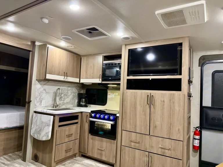 This camper has been meticulously maintained, always stored properly, and rented with care—it’s in excellent, spotless condition with no issues, ready for your next trip. Clean linens, basic kitchen essentials, and a smooth towing experience are all part of the package.