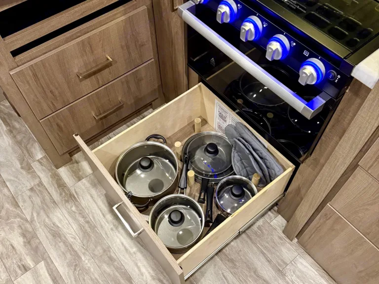 • Ample storage throughout, including bike/gear storage pass-through and wardrobe/pantry space.