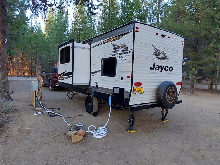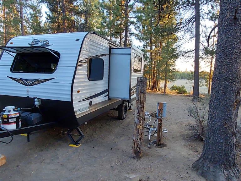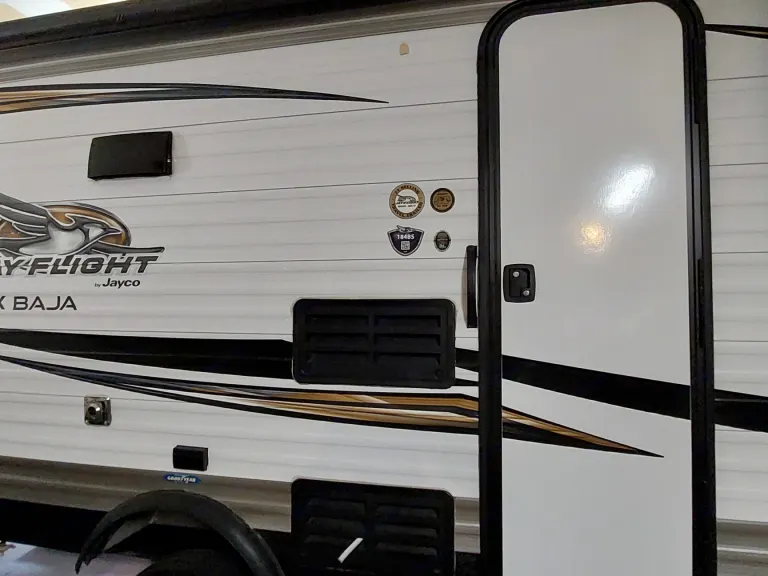 2019 Jayco Jay flight SLX Baja Edition. Featuring double bunk beds and queen-sized bed. Sleeps 5. sink, bathroom with tub and toilet. Microwave, gas two burner stove with hood vent. Refrigerator and Heater. Bluetooth radio system. Tons of storage space.This unit comes with furnace/water heater system, Outside awning with accent lighting. Single axle Baja edition is equipped high clearance for slightly rough terrain.