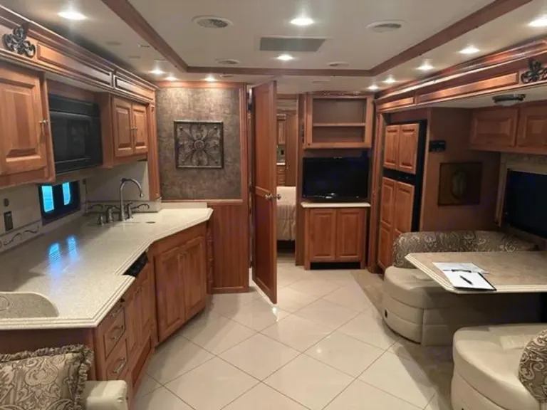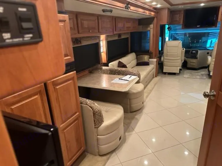 Immaculate Tiffin Phaeton 40 QBH with internet and TV. Must have RV experience. Very spacious for up to 8 people. From the entry, you will see the fully equipped kitchen with state-of-the-art appliances, plush dining area, two leatherette recliners facing a tv. Camping chairs, firepit, kids scooters below.This luxury RV also has two full bathrooms, a king sized bedroom equipped with a privacy door, washer and dryer and plenty of storage space galore. There is a TV, but no satellite. Sometimes you can connect your phone to the local wifi and stream.Fresh linens included.Ce qui est inclusCamping chairs, firepit, kids scooters below.Autres points à signalerI bought this RV for my future retirement and would like others to enjoy it until I'm able to travel full time.