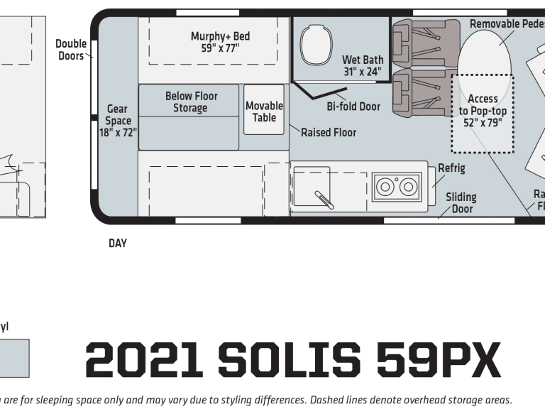 Lots of storage for your gear & toys. Screens, roof-fan for ventilation. Black out window shades for privacy & heat retention at night & cooler during the day!