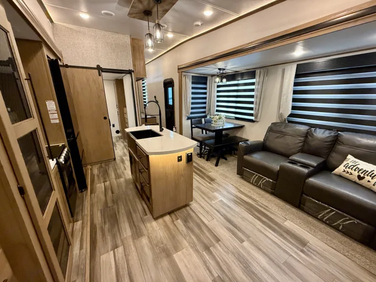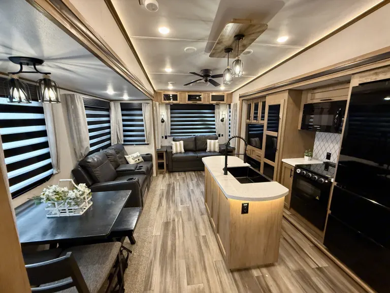 The 2023 Forest River Sabre 36BHQ is a spacious and family-friendly fifth-wheel RV, perfect for those looking for a comfortable and convenient home away from home. It features a modern layout with a separate bunkhouse, ideal for families or larger groups. The RV includes a large living area with plush seating, a well-equipped kitchen, and a master suite with a king-size bed. It also offers ample storage space, multiple slide-outs for added room, and a full bath with easy access. Whether you're heading out for a weekend getaway or an extended road trip, the Sabre 36BHQ provides a luxurious and relaxing experience with all the amenities you need.
