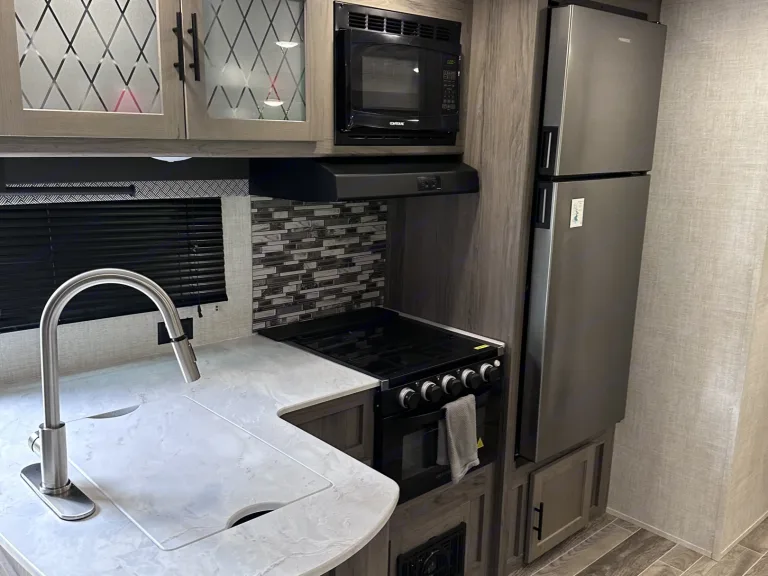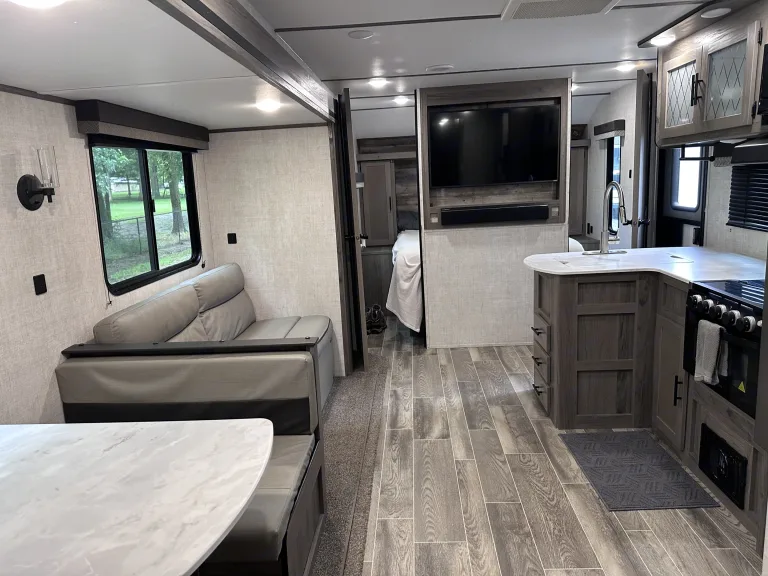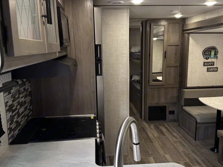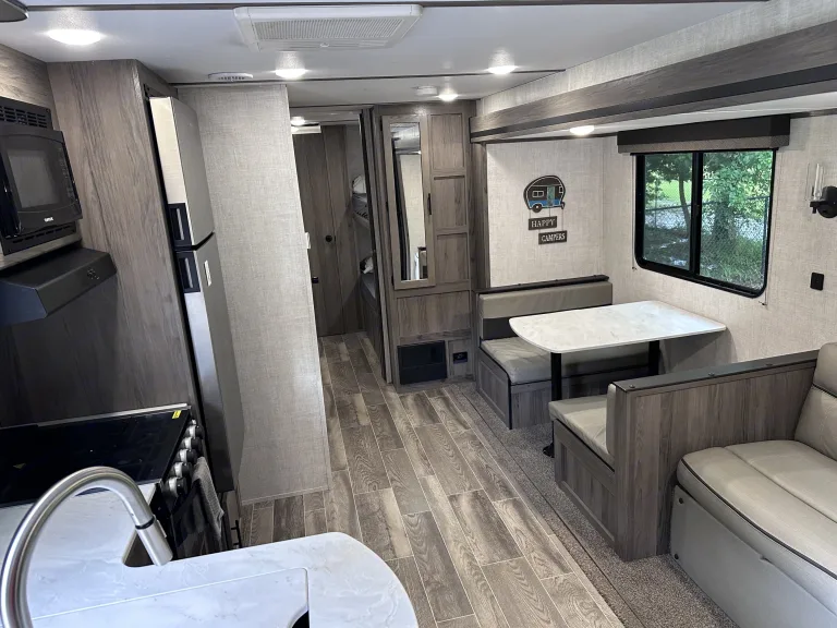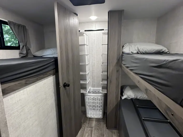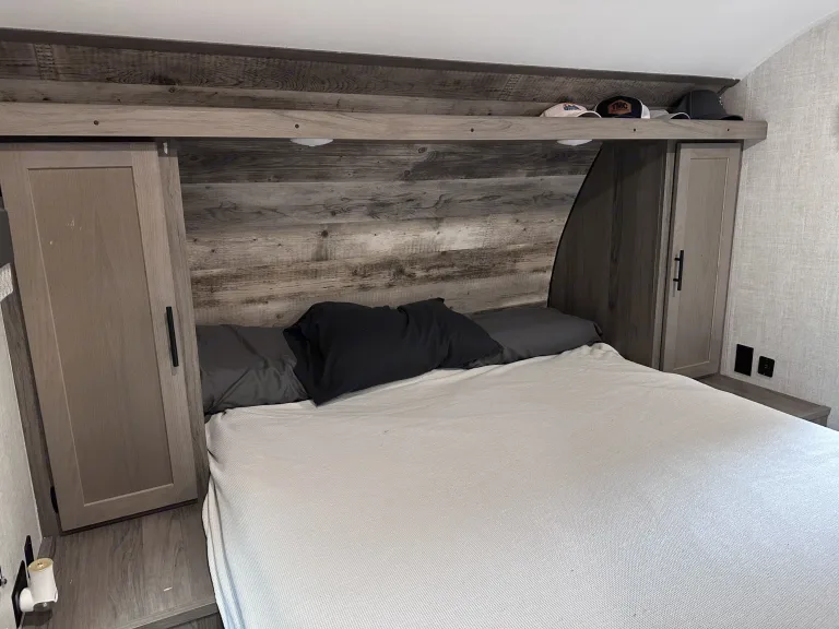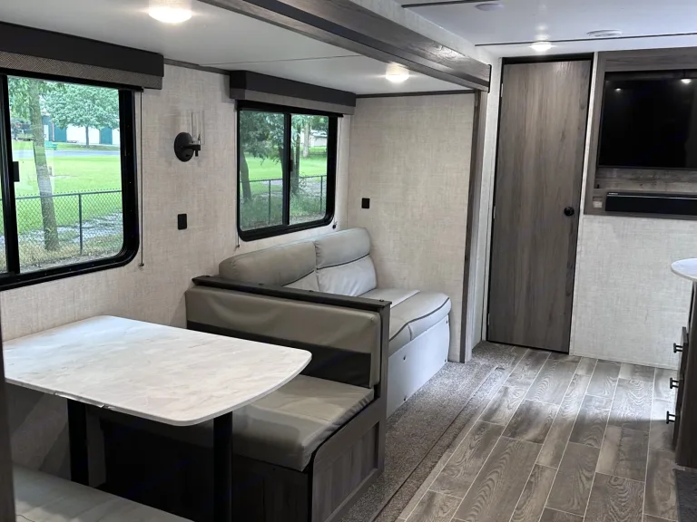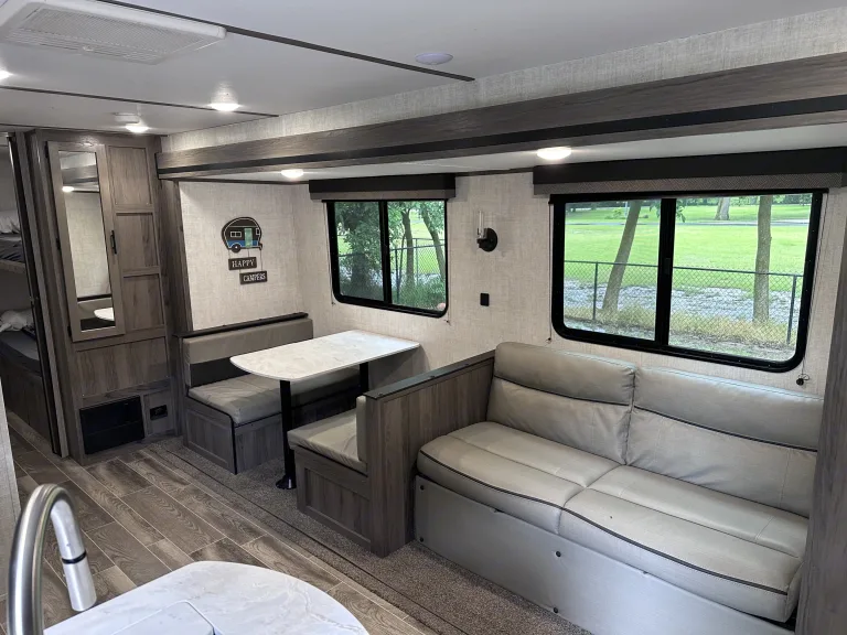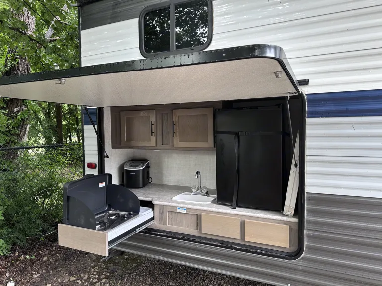 ***** Drop off and Pick up times are flexible, please reach out and make arrangements if needing other than the times listed. Pick up and drop off times may vary due to campground check in/out times. Thank you!!! *****This is a fully stocked with everything you need for a camping trip! It says it sleeps 9 but I would say sleeps 7 comfortably with a queen bed in master, couch that turns into bed, table that turns into bed and 3 single bunks. Also has an amazing large outdoor kitchen with cabinets and large fridge. Ce qui est inclusComes stocked with all linens for beds and towels. Plates, bowls, cooking pans and silverware. Trash bags, paper towels, toilet paper and disinfecting wipes.