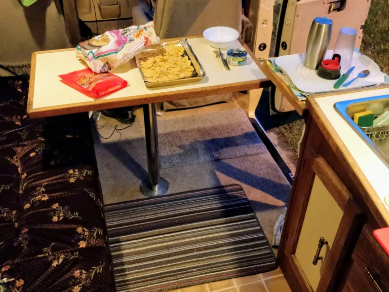 - Most of your kitchen basics needed are in the van, including soaps, spices, oil, sugar, cooking gadgets, coffee setup, pots, pans, cutting boards, knives etc