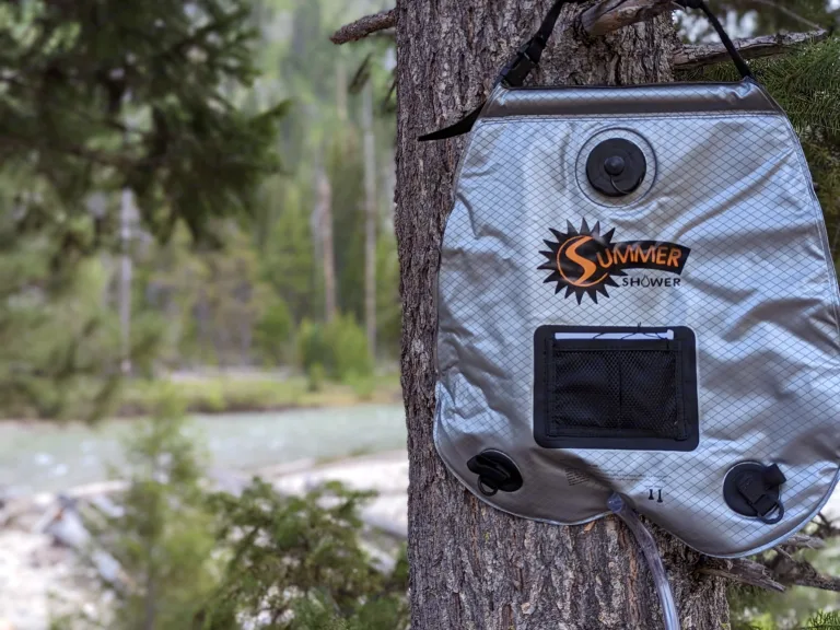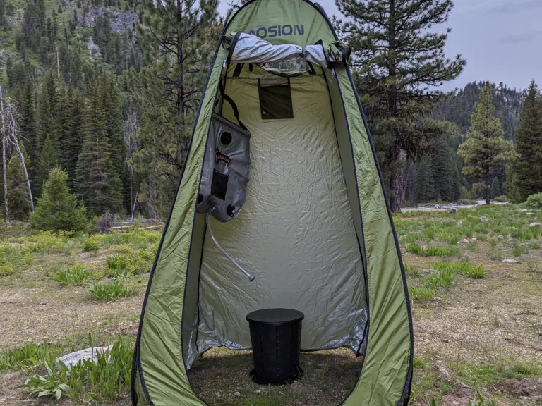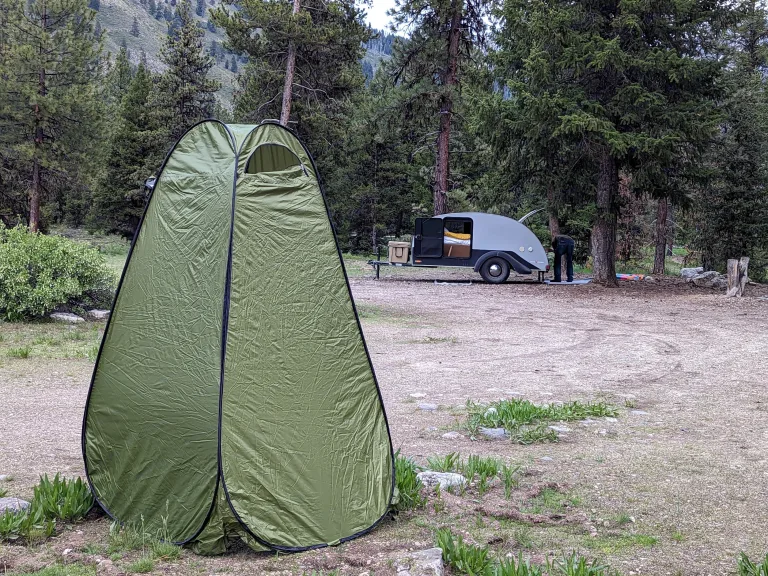 The rental includes a pop up privacy shelter to use the outdoor shower or the camping toilet.