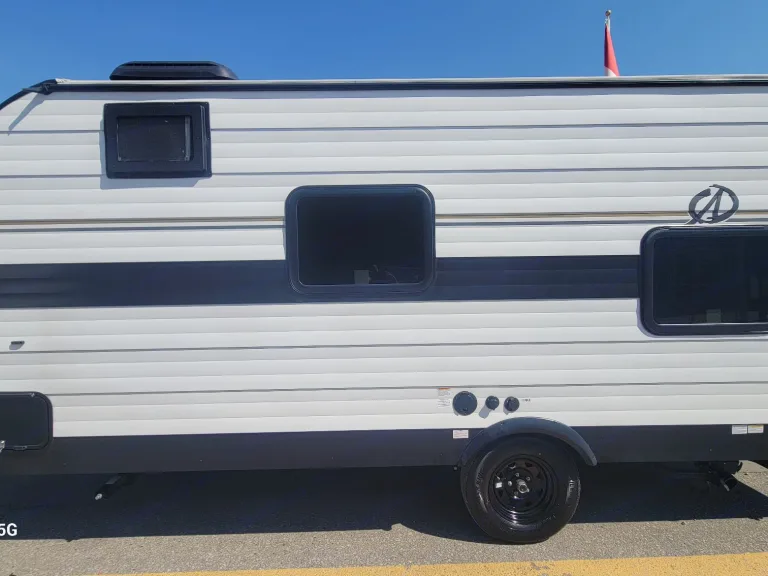 Don't wait to experience this new travel trailer. Light and versatile makes this trailer ideal for your next camping trip. Weighing only 2960 lbs dry and 3898 loaded makes it a dream to tow.Experience comfort with a queen size bed, 2 bunk beds and an additional sleeping arrangement from a folding dining table.Trailer is equipped with ac and heating for those warm or cool days/nights.Book today!Ce qui est inclus• bedding