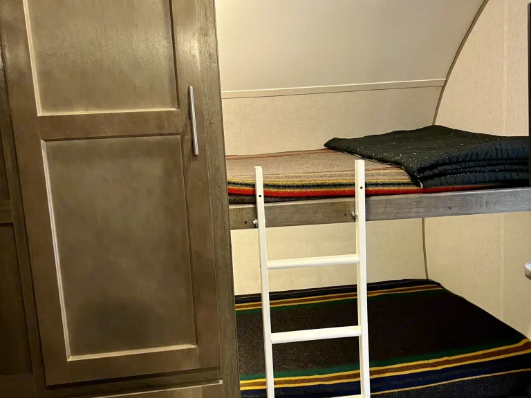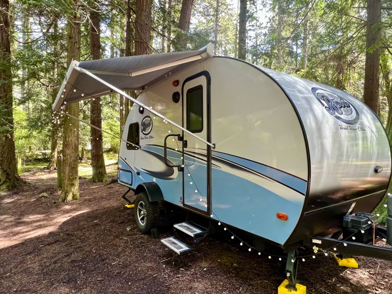 Baby blue is the perfect size camper for your next adventure. It has a unique layout that allows 4 people to sleep comfortably (two extra wide bunk beds and a dinette that converts into a memory foam full size bed). Due to it's light weight design it is easily towable with your family car (Ascent, Highlander, Pilot, etc). It fits in all the amenities to elevate your "glamping" experience - smart TV, heat and AC, fridge, stove, bathroom, shower, sink. You can hook-up to any campsite that offers electric and water. Or if you are off the grid we can provide a full water tank, solar panel and generator.We also offer add-ons and options for your next camping trip or family gathering. This might include dropping off the camper and setting it up within 90 miles of Seattle area. You let us know your vision and we will do our best to make it happen.Ce qui est inclusPendleton camp blankets for beds, pillows, fresh sheets