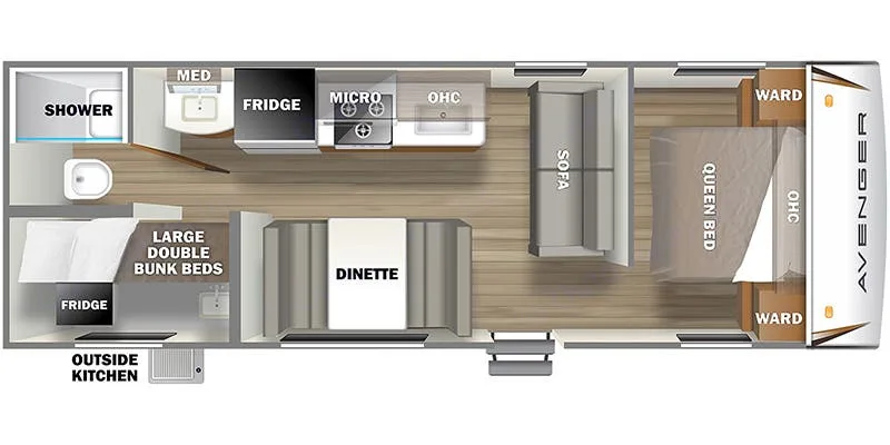 The Avenger 26BK features a front queen bedroom that's separate from the rest of the coach for extra privacy. The main living area is cozy and stylish, it comes ready for you to bring your clothes and toothbrushes.