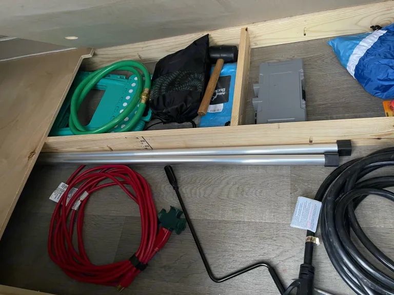 This shelter attaches directly onto the trailer and can be used in multiple ways to provide shelter.