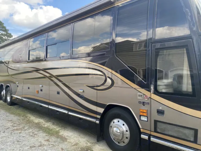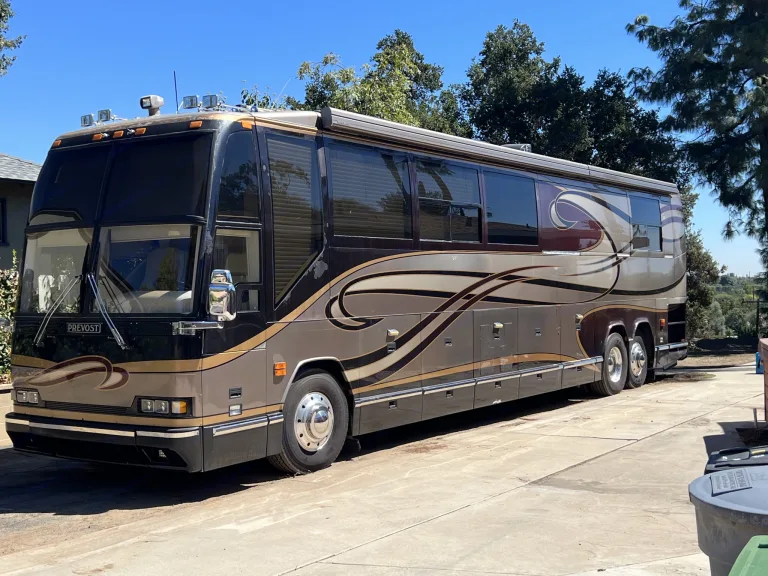 This is a 2001 Prevost 45' motorcoach powered by a 500hp 60 series Detroit diesel. I've owned other Class A motorhomes and this one drives like no other. It has 8 new tires and all the maintenance is up to date. It has 4 brand new Dometic roof air conditioners and a 20kw diesel generator that will run the entire bus. This bus is equipped with a large alternator that can run one roof air without using the generator. Ce qui est inclusIt has a queen size memory foam matress. The bus will be quipped with all kitchen supplies, towels and wash clothes. It has 100 gallons of fresh water onboard that will last over a week without any refills. It is powered not only by generator, but has 8 new AGM batteries installed that will run everything except AC without a generator. It has two new flat screen tvs and internet. RecommandationsClass B drivers license is absolutely required.