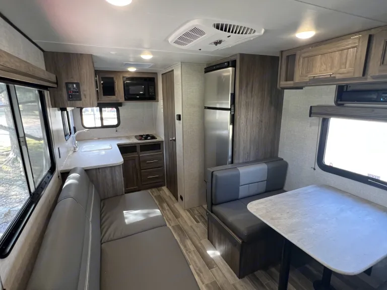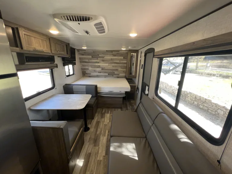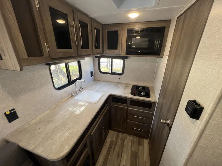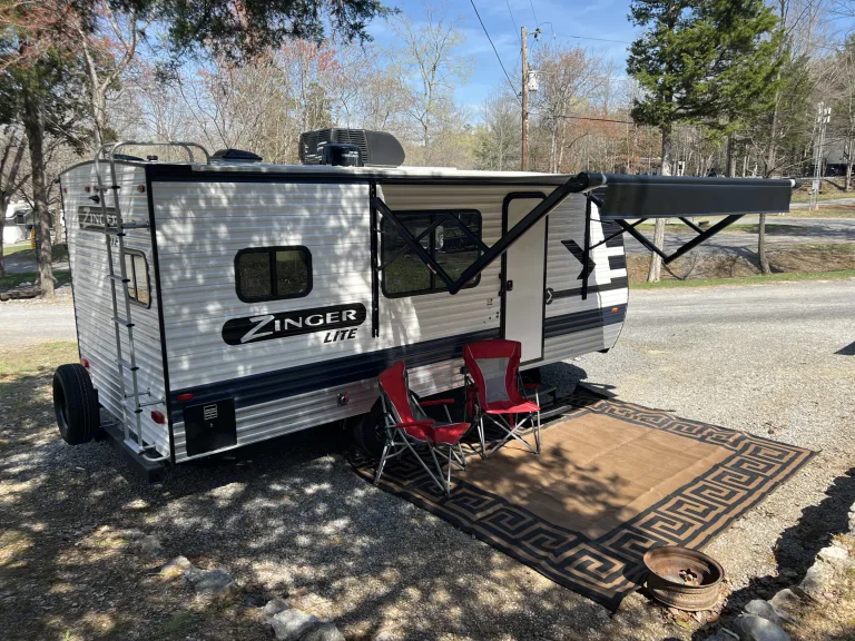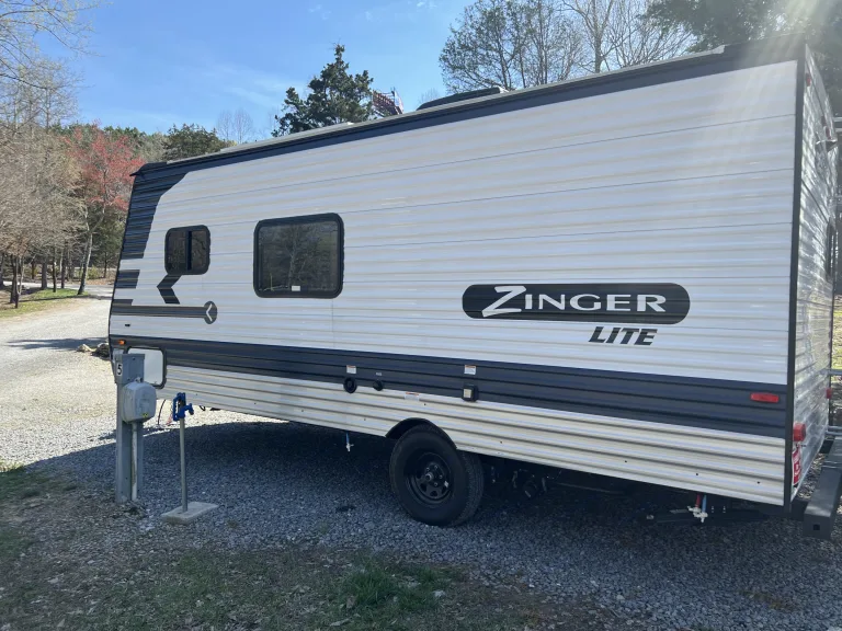 Are you looking for a great RV for the entire family? Look no further! This 2022 Zinger Lite 18RK we named Zesty weighing only 3410 lbs is perfect for almost any SUV or Truck and it has all you need to hit the road. Complete with a weight distribution kit, 30amp Electrical Cable with Adapters, Sewer Hose, Water Hose and adapters, Jack Cranks, Electric front Winch, and leveling chocks for set up this unit comes with all you will need! The spacious 8 Foot interior is perfect for a small family or some friends. The bed comes with a Queen Size Memory Foam mattress so you can rest easy knowing you will be comfortable. A full size kitchen Stocked with 1 Big Pot, 1 Small Pot, 1 Skillet, and basic cooking utensils, as well as a toaster and a coffee maker and included microwave you won't miss a thing. The Roof top 13500 BTU air conditioner makes it perfect for warmer weather! A spacious full size bathroom stocked with toilet paper and sanitation drops has all you need so you don't have to leave the comfort of your camper. Also included is a solar panel mounted on the roof to keep the batteries charged. So what are you waiting for let How We Roll get you on the road!!