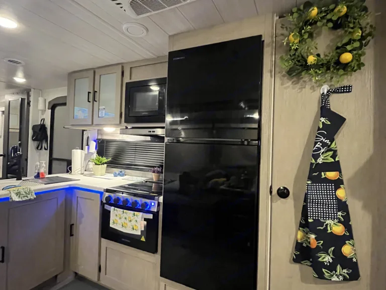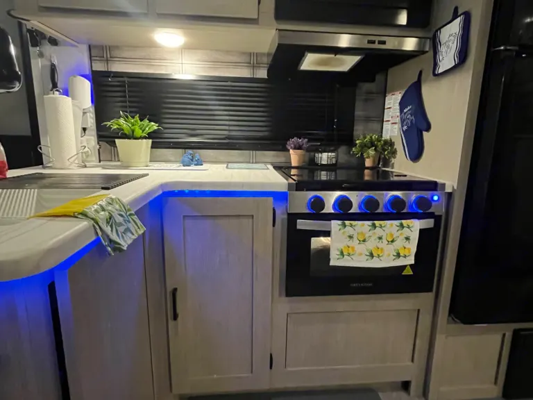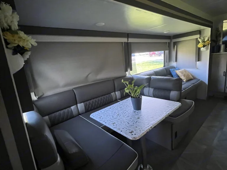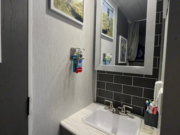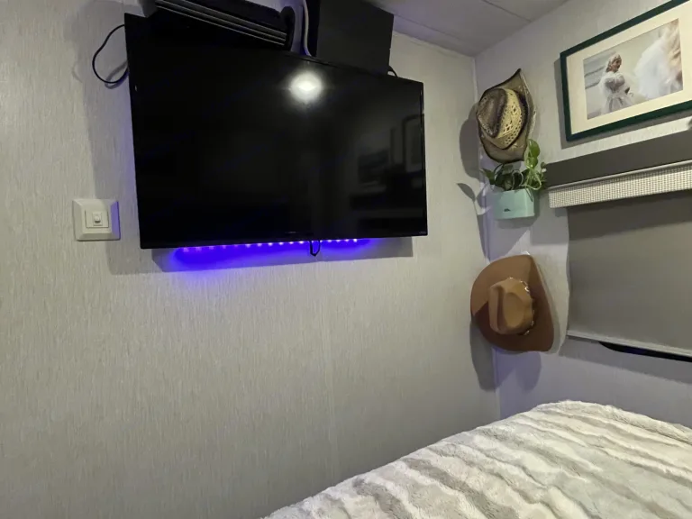 You found it!!!! The perfect getaway vessel! This beauty has everything you need to make your stay luxuriously comfortable. Featuring a large bedroom with lots of storage, huge tv and controlled ambient lighting. A beautiful entertainment center in the living area with a huge tv as well. A full kitchen complete with cooking essentials and top notch appliances. The bathroom sink is separated from the bathroom giving you extra privacy. The bottom bunk has been converted into a laundry room complete with a 2 in 1 washer/ dryer combo and extra storage shelves. An outdoor sound system with an automatic awning and outdoor lighting. Man this thing is nice…. Book and find out! Ce qui est inclus• Kitchen utensils