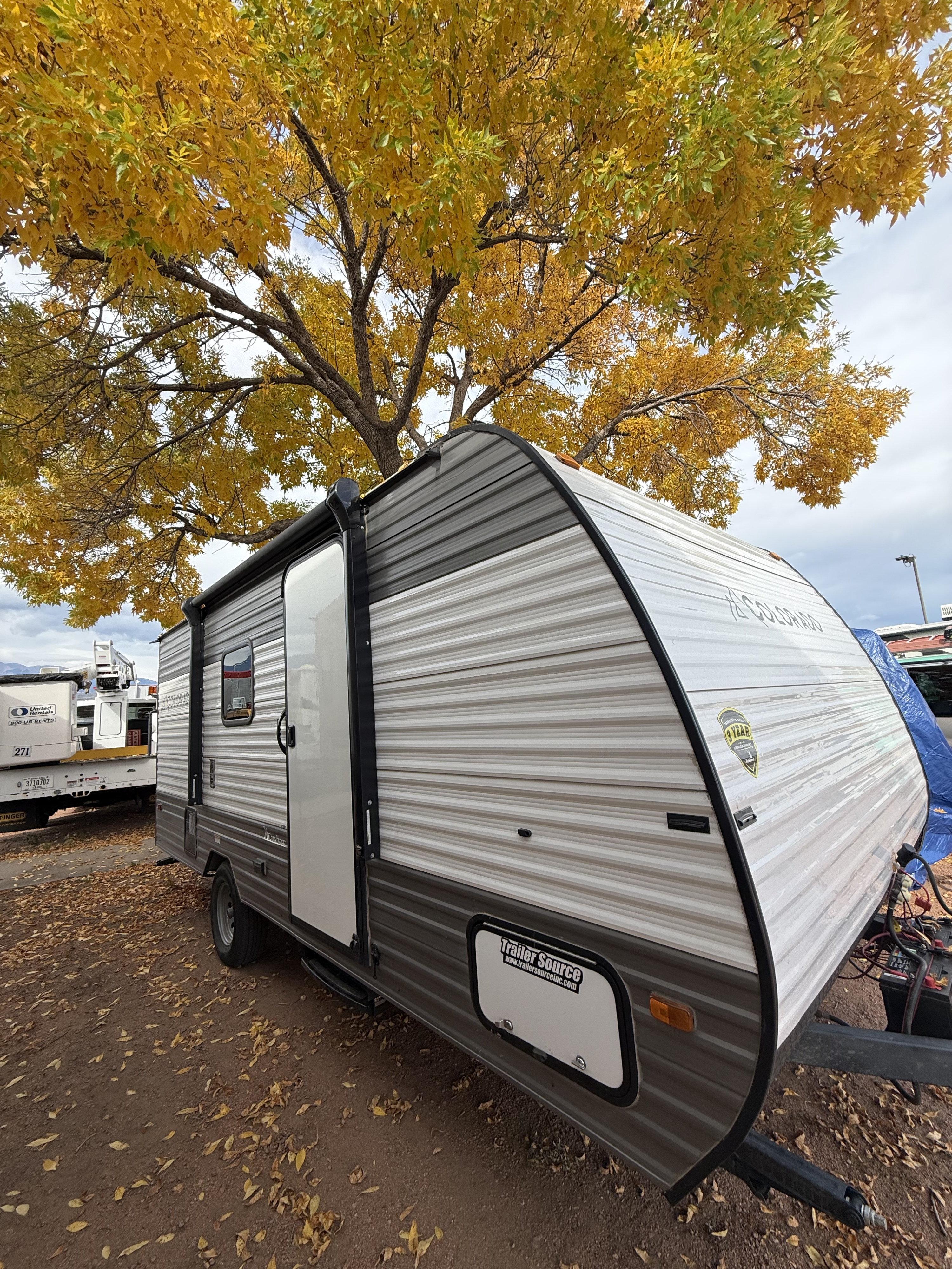 Bring your lien and blankets to help make it comfortable and cozy for your camping adventures! Comes with cookware/utensils/essentials.2 5/16 Ball Hitch is included!I will meet you at pick up & drop off times to help if needed.Spare tire, wheel chalks, hoses are included.Unlimited miles, get out and see Colorado!Ce qui est inclus• Generator Propane/Gas(RemoteStart)