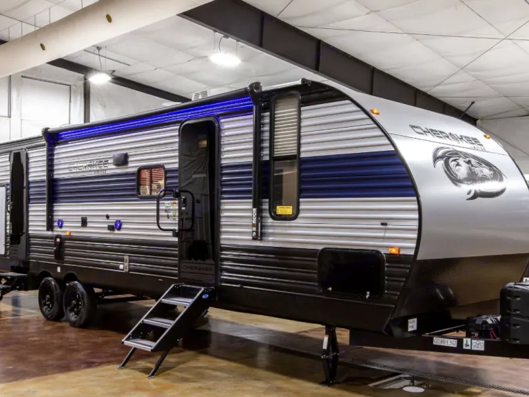 This is a 2022 Forest River Cherokee 294BH Bunkhouse Travel Trailer offered at a special Reduced Price! Availability is limited at this price, so don't wait! This nicely equipped bunkhouse travel trailer features an outstanding second bedroom in the rear with a slide-out for maximum living space, 2 bunk beds and sofa sleeper, entertainment center and wardrobe. This is a great family RV that sleeps up to 7 with bunks, sofa sleeper, convertible "U" dinette bed and a queen bed in front master bedroom! You'll have plenty of storage including a large pantry and numerous cabinets throughout!The Cherokee 294BH is very well equipped and features two slide-outs, outdoor kitchen with two refrigerators, ice maker, sink, griddle and storage, Bluetooth stereo, HD TV, electric fireplace with heat, exterior marine grade speakers, exterior storage, LED lighting, ducted heat and AC, hardwood cabinet doors, 10.7 cu. ft. refrigerator, seamless countertops, 15,000 BTU AC, premium window shades, rear view camera, power awning w/ LED lighting, outdoor shower, solar panel, two entry doors, enclosed tanks, one year manufacturer's warranty, one year complimentary 24/7 roadside assistance and much more!