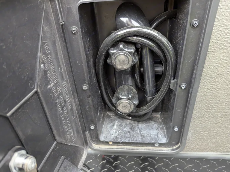 It also has 2 propane tanks and can be used to heat up the camper and using propane gas burning stove.