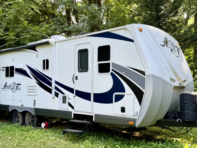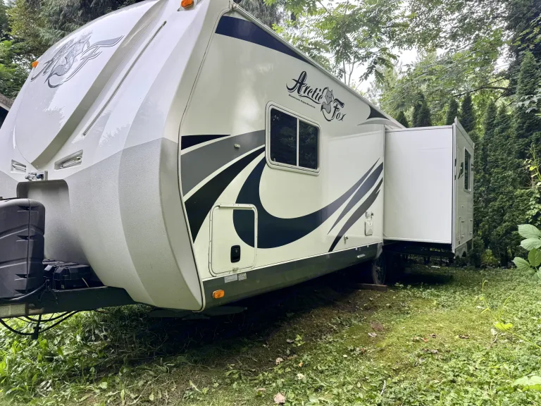 If you like to be out doors and in comfort this is the camper for you. From sitting in the recliners while having your morning caffeine admiring the view from the large windows or swivel the chair and watch some TV or kick back and listen to some music. Staning shower that is separate from the bathroom for that extra room when showering. Swimming or muddy from a trail? Use the out door shower to rinse off. Want to grill out side? Hook into the trailer with your grill and enjoy. Solar panels will make it so you have lights without running your generator or plugging in. Gas/electric water heater propane stove and a gas/electric refrigerator to give you more options if you cannot plug in.Autres points à signalerNo smoking or vaping inside of the camper smoke for obvious reasons. Vaping leaves an oily residue on windows and fixtures and is hard to clean. Thank you for your consideration and I hope you enjoy your trips