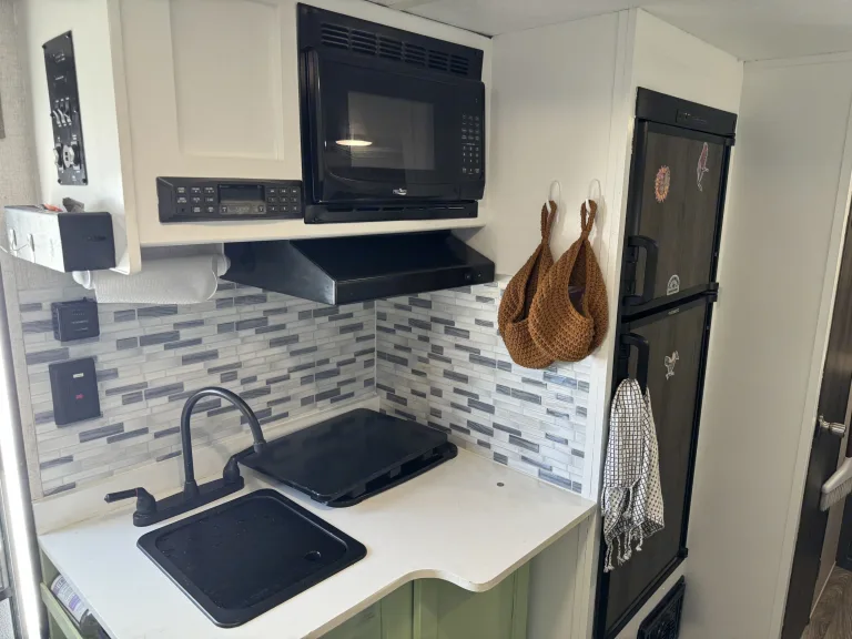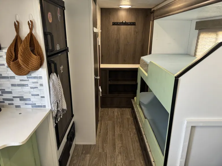 Enjoy a few days, or weeks away in this easy to tow, fun little getaway. Our Viking is slightly customized with a set of bunk beds and is great for kids or even adults! The outdoor shower is a personal favorite, keeping the outside, outside! All the comfort of home yet simple enough to keep you enjoying the outdoors!Ce qui est inclus• Outdoor table, bedding, basic kitchen needs (plates, kettle, utensils, pot, pan, etc.), towels. Toiletries, coffee maker, Coleman outdoor stove, outdoor chairs.