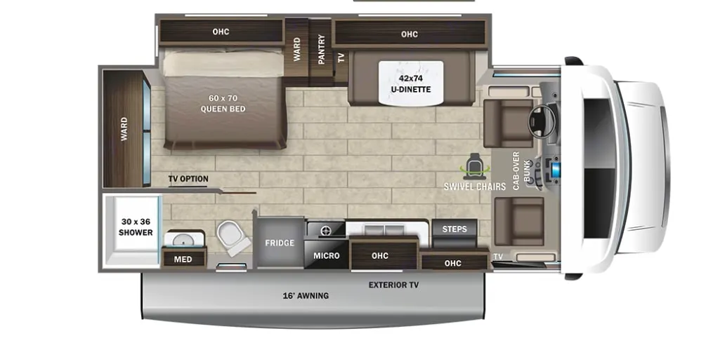Hit the road in style with this 2023 Entegra Odyssey 24B — a 27-foot Class C RV that blends luxury comfort, smart design, and pure adventure. Whether you’re exploring national parks, cruising the coast, or just escaping into the wild, this coach makes the journey as incredible as the destination.Inside, you’ll find a thoughtfully designed space that feels like a cozy home on wheels. The private rear bedroom features a queen-size bed with its own TV, giving you a comfortable retreat at the end of each day. The dinette area, has a dedicated TV - perfect for movie nights or rainy-day lounging. For the kids (or extra guests), the spacious over-cab bunk offers room for two and includes yet another TV, so everyone gets their own entertainment zone.Step outside and extend the experience - the outdoor TV, built-in generator, and included camping chairs and table turn any campsite into a tailgate-ready patio. Cook, stream, and relax under the awning while the optional Starlink Internet keeps you connected wherever your journey leads.The single slide-out opens the living area wide, giving you room to breathe, stretch, and enjoy. At 27 feet, this RV is the perfect size - easy to drive and park, yet roomy enough for a family of five. Entegra’s signature build quality means quiet rides, solid cabinetry, and top-tier finishes that elevate every mile.This is the RV for travelers who want comfort without compromise and adventure without limits. Whether it’s your first RV trip or your fiftieth, the Odyssey 24B makes every road trip feel like a luxury escape.Adventure, comfort, and connection - all in one beautiful home on wheels.Ce qui est inclusFully stocked with linens, towels, cookware, utensils, 4 Smart TVs, Bluetooth sound, A/C & heat, full bath, outdoor TV, camping chairs & table, awning with lights, built-in generator, hoses, road camera and backup camera. Just pack your clothes & food - everything else is ready for your adventure!RecommandationsExplore South Florida’s best RV routes! Drive from Fort Lauderdale to Key Largo and Key West for beaches, snorkeling, and sunsets. Visit Everglades National Park for airboat rides and wildlife. Camp oceanfront at Bahia Honda or Long Key. Head north to Naples, Sanibel, and Sarasota for white sands, great dining, and family fun. Endless sunshine, ocean views, and adventure await every mile!Autres points à signalerNo smoking or vaping inside the RV. Pets welcome with approval. Please return the RV clean and with tanks emptied (or choose our cleaning add-on). Starlink Internet available for an extra fee. Generator use included within limits. Drive carefully - 27ft is easy to handle but treat it like your home on wheels. Enjoy and take care so the next guests can too!