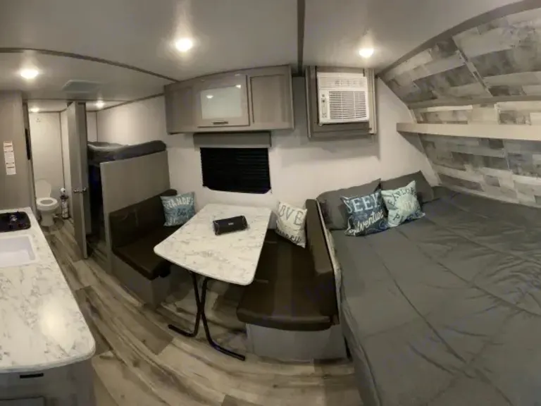 Excellent little RV. Enjoyed it with a family of 5. 2 adults and three children ages 7, 5, 1.