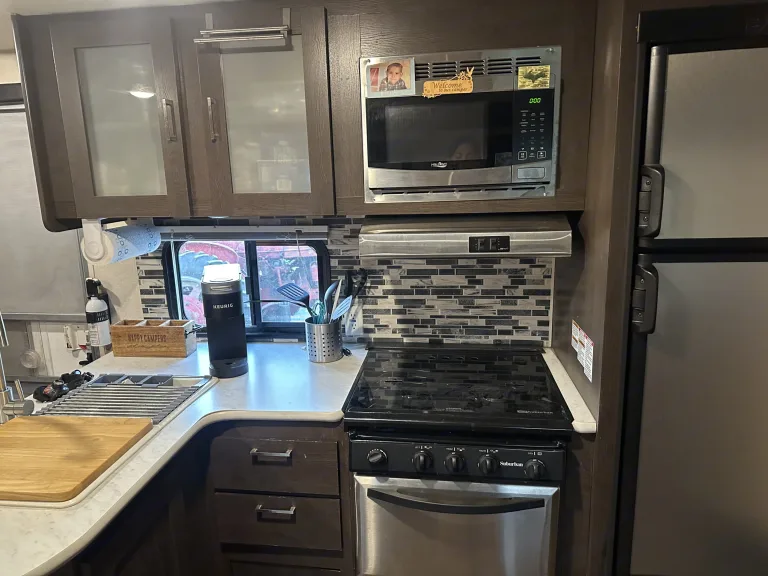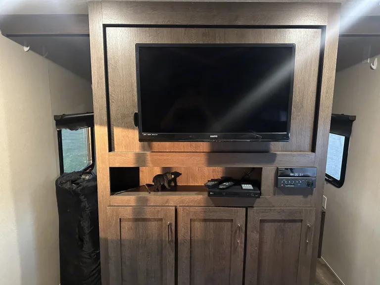 Adventure-Ready Family Camper – Pet Friendly & Fully Stocked!Looking for the perfect home on wheels for your next getaway? Our travel trailer is family-friendly, pet-welcoming, and fully equipped with everything you need for a comfortable and relaxing trip!What’s Included:Toilet paper & paper towelsPots, pans, and basic dishes10 bath towels and washclothsBedding & pillows for the queen bed and three additional sleeping areasOptional bedding available for the dinette and two couches upon requestAttached gas grill – perfect for easy outdoor cookingOutdoor table for meals or lounging at your campsiteIce maker – great for keeping drinks cold on hot daysRoku TV in the living room + DVD playerTV & Blu-ray player in the kids’ roomPet Policy: