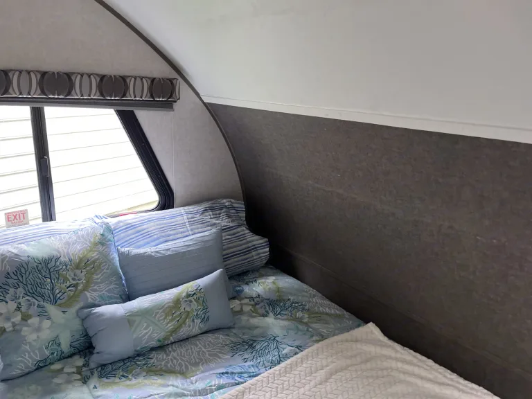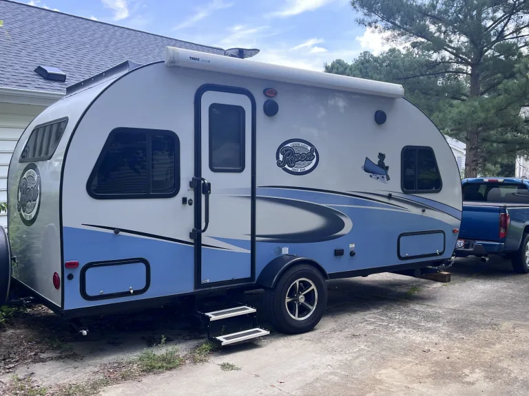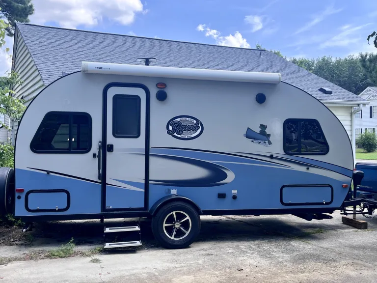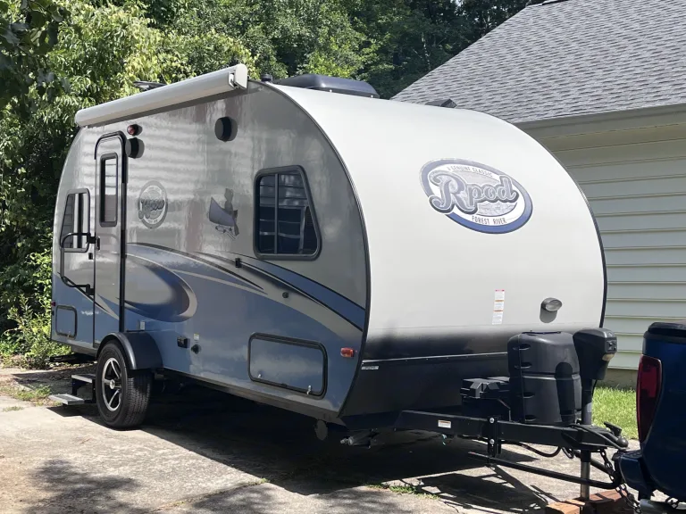 ** 2,700lbs dry weight**Carolina Dream is your beach, mountain, or lake getaway for your family or small group. This Carolina Blue retro looking RV will bring back childhood memories of crackling fire and charred marshmallows.We got this to bring our small family together and we want to be a blessing to other families to create memories and heal in nature.DescriptionThe 2018 Forest River R-Pod 189 is a lightweight travel trailer known for its unique shape and construction, offering a blend of luxury and towability. It features a one-piece seamless fiberglass roof, a 6'6" interior height, and large holding tanks. Key features include, AC, a 20,000 BTU furnace, a 6-gallon gas/electric DSI water heater, and LED interior lightingCe qui est inclus• Have stocked: