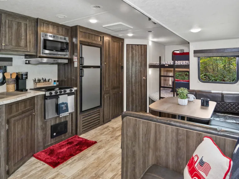 We are a family of 4 who love to travel! My wife grew up camping and is excited to give our daughters the same experiences. If you're ready to experience camping, we welcome you to come give it a try in our 2019 Highland Ridge. It sleeps 9 with a private queen bed in the master, 2 wide bunks, a dining table that converts to a double bed, and a sofa sleeper. It has one large slide that makes this camper feel plenty roomy for your family and friends.It comes fully equipped with a complete kitchen, 2 televisions, bathroom, powered awning, and more! There is plenty of storage space, games, lawn chairs, and more!Ce qui est inclusAll the kitchen necessities - plates, bowls, utensils, pots, pans, baking pan, serving bowls and platters, foil pans, main spices, foil, Ziplock baggies