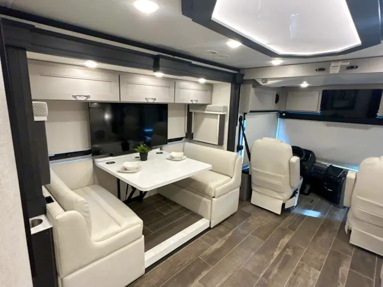 Thank you for visiting our listing! We are Carefree RV and operate out of Exton, PA. Our goal is to provide you with a carefree experience so you can focus on what's important to you!Making your way to the campgrounds is just the beginning of your comfortable journey! Once at your destination, you can continue relaxing inside with beautiful decor, cozy seating, and sleeping space for six so you can invite overnight guests! The galley kitchen has an electric induction cooktop, a convection microwave oven, and a 21.4 cu. ft. double door residential refrigerator, plus a pantry for the cook to be able to feed everyone. You can relax on the reclining theater seats, at the Dream dinette, and on the captain's chairs that swivel. The full bathroom has extra counter space for toiletries and such, and the private rear bedroom offers a Tilt-A-View inclining king bed for ultimate comfort, a stackable washer/dryer to keep everything clean, and two closets. You will find a TV in the living area, over the cockpit, in the bedroom, and outside for maximum entertainment. And the drop-down overhead bunk is a great place for kids or grandkids to sleep.With any Aria Class A diesel motorhome by Thor Motor Coach, experience RV living with all the luxurious amenities you are accustom to, command the roadways with improved handling from the l-beam front axle with a 55-degree wheel cut, and enjoy a smooth ride thanks to the Air-Ride suspension and Sachs shock absorbers. The driver will also appreciate the 10.1" touchscreen dash radio with Bluetooth, and Sirius/XM prep when navigating the roads, and the comfort of the leatherette reclining/swivel adjustable captain's chairs. The bathroom provides an oversized full height shower with a glass door and a designer backsplash, while the kitchen provides solid surface countertops and a dinette. You'll also enjoy designer tile backsplash, a large double bowl stainless steel sink with a single handle faucet, a pull-down sprayer, plus full kitchen amenities. More standout features include the Studio Collection cabinetry with rake style doors and matte finish, living room pin-up lights, and polished porcelain tile flooring, plus much much more depending on the Aria you take on the road!We also included everything needed for a successful camping "hook-up" including hoses, pressure regulator, and more.Save Time with our Pick Up/Drop Off Service -Please inquire for cost details.We can deliver the coach to the destination of your choice and set it up for a hassle free experience. Once the rental is complete, we will come pick up the coach. No need to worry about driving, traffic, etc. We make it easy to RV!! Not interested in driving? We can set you up with a professional driver to handle the rig for you....the ultimate in Stress Free!Absolutely NO Smoking/Vaping - any smoke odor at end of rental will result in forfeiture of full deposit.No matter what you plan to use this motorcoach for we can help to customize it for your specific need. Do you want help to pick up groceries and stock the coach? Celebrating a special occasion and need help decorating? Please call us with any questions, special requests, or to learn more!For additional Reviews about our company, please checkout our google listing or our owner page via Outdoorsy!Thank you for looking and we look forward to earning your business!The Thor Aria 3401 is a 34-foot Class A diesel motorhome built on a Freightliner chassis. Key features include a 360-hp Cummins engine, triple slide-outs, a full-wall slide, a tilt-a-view inclining king bed, reclining theater seats, and a stacked washer/dryer. It has a residential-style kitchen, a mid-ship half bath, plus a drop-down overhead bunk for extra sleeping space.
