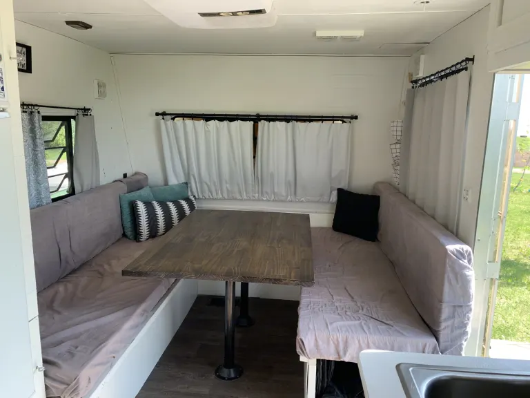 This Kid & Pet friendly (dogs welcome, but please no cats due to allergies!) Classic camper, also fondly referred to as “Dutchie” has undergone a major interior renovation and refresh to update and create more sleeping & dining space!It has served our big family of 9 well and we’ve had many memorable adventures camping in the Minnesota Northwoods and Midwest area since we renovated it in 2021. We are ready to share a great camper for a great value with your family so you can enjoy camping in the beautiful Minnesota Northwoods area!This camper comes fully equipped with utensils, cookware, fresh linens in back bedroom, 4 camping chairs, extra lighters, soap and more for getting you started with a great camping experience.For full functionality (microwave, refrigerator/freezer, Air conditioner, etc) you must be connected to a 30amp electrical supply. (Adapter and extension cord provided in camper)If using the dinette as a bed, you’ll want to bring some extra bedding/ sleeping bags if you prefer. 4-5 kids sleep comfortably in this space!If you want a comfortable, cozy, cute and updated camper but don’t want to spend a fortune on a fancy new one, this one is perfect and will meet all your camping needs so you can have some extra cash for memories with your family!Ce qui est inclusCamping chairs x 4, roasting sticks, lighters, extra bug spray, toilet paper, fresh linens in back bedroom, cookware, utensils, tablecloth for outdoors, outdoor rugRecommandationsCamp at any beautiful Minnesota State Parks! Or haul to a lake lot, or any up north adventure that suits your family. Itasca State Park is a must visit if you haven’t been there and is less than an hour from this location. Autres points à signalerKids & Pets welcome!