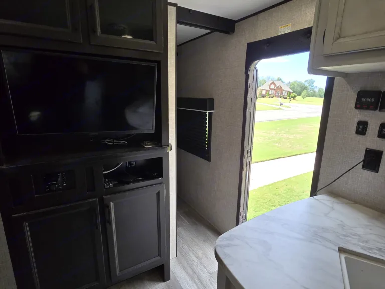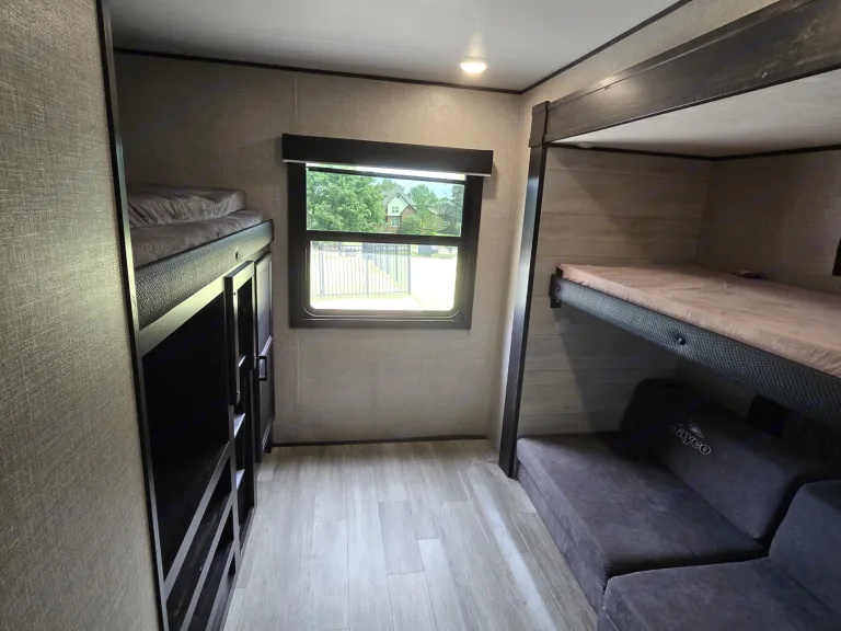 2022 Jayco Jay Flight SLX 324BDS – Easily Sleeps 10, Outdoor Kitchen, Bunkhouse, & Delivery Available!Experience family camping at its best with this 2022 Jayco Jay Flight SLX 324BDS, a top-rated travel trailer designed for comfort, space, and outdoor fun. This model combines Jayco’s legendary build quality with smart design — perfect for families, couples, or anyone ready to explore.Inside, you’ll find a modern farmhouse style interior with a large slide-out, full kitchen, cozy dinette, and plush sofa that converts into additional sleeping space. The rear bunkhouse provides a private area for kids or guests, while the front master bedroom features a queen bed with accent lighting and generous under-bed storage.Outside, enjoy the fully equipped outdoor kitchen with fridge, sink, and griddle — ideal for morning coffee or evening cookouts.Highlights & Features:Sleeps up to 10 (queen bed, bunks, convertible dinette & sofa)Dual entry doors for convenience and safetyFull bath with tub and outdoor access doorPower awning and stabilizersOutdoor kitchen & entertainment-ready exterior speakersDucted A/C and efficient propane and electric heatingIncludes tons of extras: hoses, connectors, leveling pads, surge protector, camp games, cookware, and more!This camper has been family-loved and gently used, always stored clean and maintained with care.