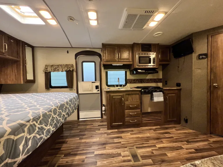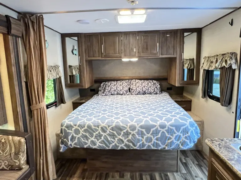 Welcome to your perfect PNW adventure with our Keystone Cougar! This meticulously maintained RV is ready to make your camping experience unforgettable. With its fresh linens, comfortable queen-sized bed, and fully equipped kitchen, it offers all the comforts of home on the go.This trailer is a perfect size! It's big enough to feel comfortable, yet small enough to tow with a Toyota Tacoma or Ford Explorer.Step inside and be greeted by a spacious interior, thanks to the slide-out feature. The dinette area extends, providing ample room for relaxation and dining. It even transforms into a second bed, perfect for accommodating kids or extra guests. Well-behaved, potty-trained pups are also welcome to join your journey.One of the standout features of this RV is its generously sized bathroom, a rarity in the world of recreational vehicles. Complete with a spacious shower (even for the tall folks) it ensures a refreshing experience no matter where your travels take you.Rest assured knowing that the trailer is in excellent condition, it has only been used a handful of times. The brand-new queen mattress adds an extra touch of luxury, making you feel right at home. Plus, we provide a comprehensive renter's manual and guide, as well as personal instruction, to ensure you're comfortable and confident before hitting the open road.Enjoy the free addon: a mini Blackstone grill!We understand that the little things can make a big difference, which is why we've included basic amenities such as bedding, towels, and utensils for your convenience. If you're looking for some extra fun during your trip, we offer add-ons like a trailer hitch, a blow-up stand-up paddle board, and Starlink internet, to enhance your outdoor experience.Located near the Olympics and beautiful beaches, this RV is perfect for exploring the stunning Pacific Northwest. Whether you're a seasoned RV enthusiast or new to the camping world, our trailer is here to help you create lasting memories.Ce qui est inclusIn addition to the fantastic features of our trailer, we believe in providing you with everything you need to make your trip as convenient and enjoyable as possible. Here's what's included:Fresh Linens: We understand the importance of a good night's sleep, which is why we provide fresh linens for a comfortable queen-sized bed. Rest easy and wake up refreshed for your daily adventures.Kitchen Essentials: Our RV comes fully equipped with all the kitchen essentials you'll need to whip up delicious meals on the go. From pots and pans to plates and even a Kurieg & French press. we've got you covered. Cooking in the kitchen is a breeze, but we also have something special in store for all the grilling enthusiasts... Keep reading!Complementary Blackstone Grill: Why limit yourself to cooking indoors when you can enjoy the outdoors to the fullest? We offer a complimentary Blackstone grill complete with propane and grill utensils. Grill up your favorite meats, veggies, and more, and savor the flavors of outdoor cooking. It's the perfect way to enhance your camping experience and enjoy delicious meals under the open sky.Towels and Bathroom Essentials: Don't worry about packing bulky towels. We provide fresh towels for your convenience, so you can enjoy a refreshing shower in the spacious bathroom. You'll also find bathroom essentials such as soap and toilet paper, making your RV experience even more comfortable.But that's not all! We also offer additional add-ons to further enhance your trip. From a trailer hitch for towing extra equipment to a blow-up stand-up paddle board for water adventures, we have options to suit your specific interests. Stay connected with Starlink internet and relax in our comfortable camping chairs as you soak in the beauty of the PNW.With our well-equipped RV and complementary Blackstone grill, you'll have everything you need to create delicious meals and enjoy the great outdoors. So why limit yourself to indoor cooking when you can savor the flavors of outdoor grilling? Book our 2015 Keystone Cougar model 19Rbewe now and embark on your PNW adventure, where memorable experiences and delectable meals await!