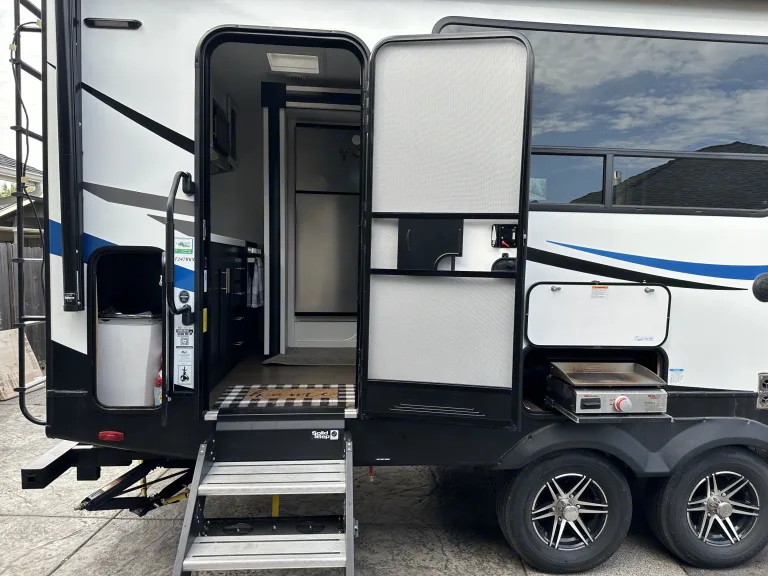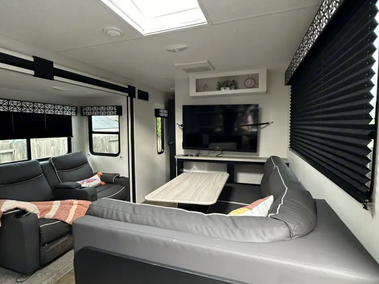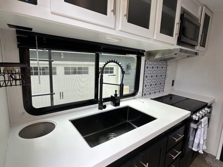 • Enjoy a full, modern kitchen and spacious slide-out for easy living on the road.