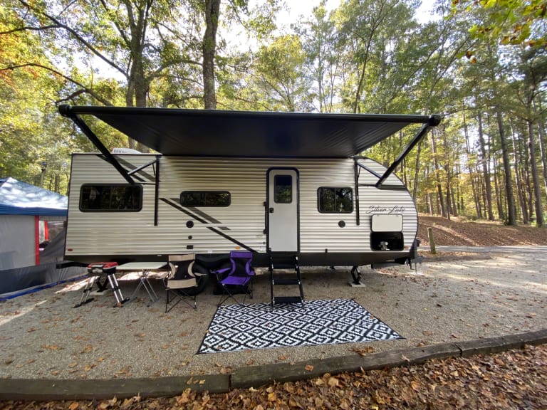 Beautiful, 2022 Cozy Couples camper - can comfortably accommodate a small family with younger kids. Very comfortable Gel memory foam King size bed with a jack-knife sofa as well as the ability to convert the dinette into another bed. This camper comes with all the comforts of home - just bring your clothes, food and toiletries. A/C and heater both work great!! Lots of storage and a mid size refrigerator. Large tanks as well as plenty of propane and an outdoor shower head with hot water. Pet friendly! No smoking please. Delivery and set up is available.Ce qui est inclusCookware & cooking utensils, mixing bowls, colanders, dinnerware set and utensils for 4, Keurig k-cup single cup coffee maker and toaster come with every rental. Delivery and pickup within 60 mile radius available. Autres points à signalerPets welcome!!