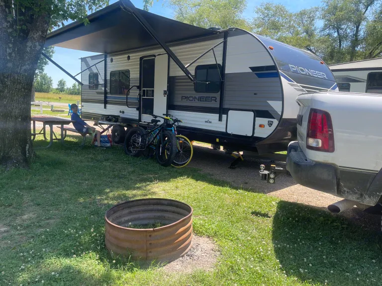 Camping chairs (3)RecommandationsExplore beautiful Colorado and beyond, take your toys (bikes, dirt bikes, ATV) with you or just enjoy the ample living space and porch at your campground.Autres points à signalerThis is a 31' long, 7500 lb GVWR trailer, so it will require a vehicle capable of towing this rig and a driver who has experience towing a large trailer.