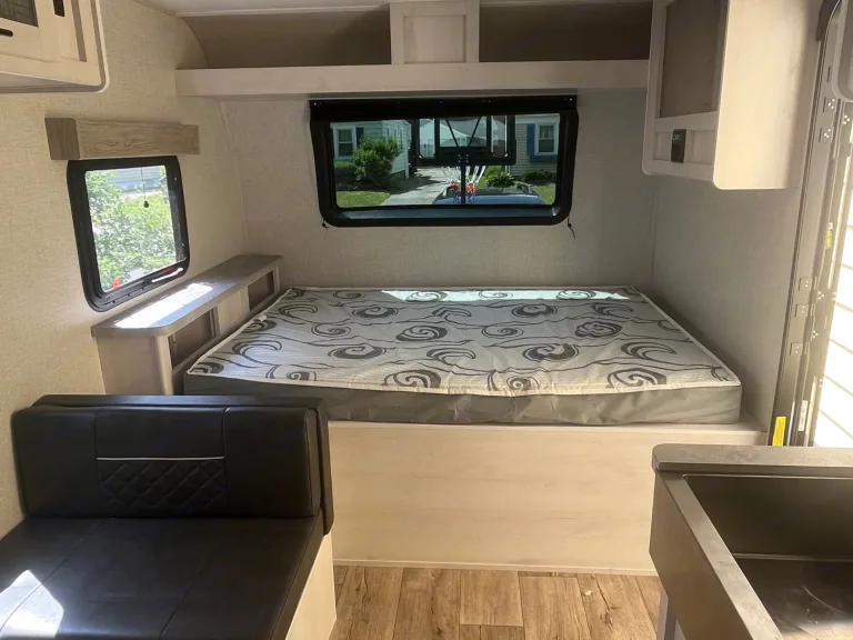 Thank you for taking a look! I am pleased to offer my camper for wherever your adventure may take you!There's plenty of fridge, freezer and storage space to support you on your journey. A queen bed, twin bunkbeds, and a convertible dinette provide more sleep space than should be possible in a trailer of this size. When it is not being used as extra sleep space, the small dinette is a great place to share a meal.Full hot water shower and bathroom. The power 9' awning, outdoor lighting and speakers extend your comforts into the great outdoors.I can include bedding free of charge.Propane fridge and heat, LED lighting, USB device charging and 20 gallon fresh water tank make it great for getting off grid. If you are able to plug in then the A/C will keep you cool in any weather.I am super flexible with pickup and drop-off times.