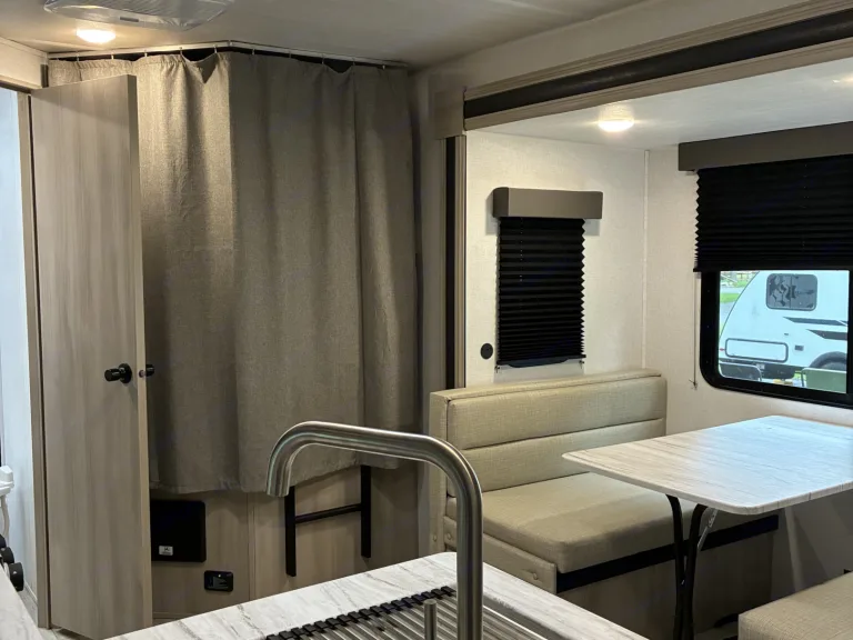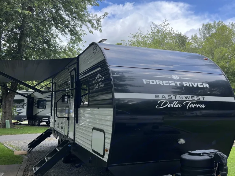 Looking for the perfect family-friendly travel trailer to make unforgettable memories? This East to West Della Terra 241BH checks every box. With its smart design, spacious layout, and cozy touches it's the ideal home-on-wheels for your next adventure. The folks at East to West truly thought of everything for this trailer with its open living space, full kitchen indoors and outdoors, modern comforts like A/C and heating, and a large shower with removable shower head to make bathing littles a breeze. This travel trailer is sure to dazzle you and make your next camping trip a breeze. Ce qui est inclus• Kitchen amenities (pots, pans, plates, bowls, cups, utensils)
