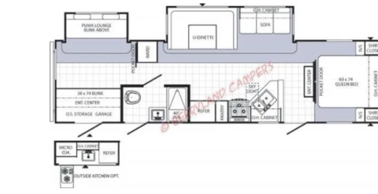 Outdoor kitchen, 2 A/C. 2 door access in camperDelivery only within 100mi radius available upon request. After 100 mi will be a mileage chargeRecommandationsI would recommend any place that you can relax and enjoy some down timeWe have personally camp at