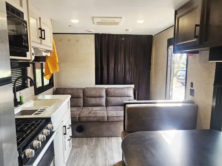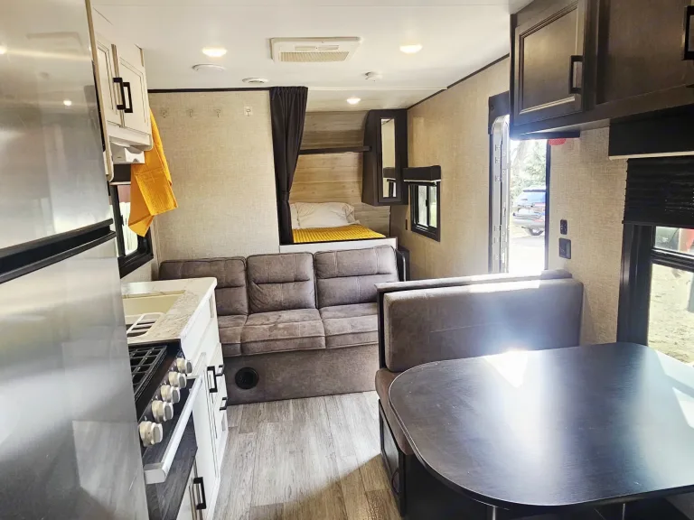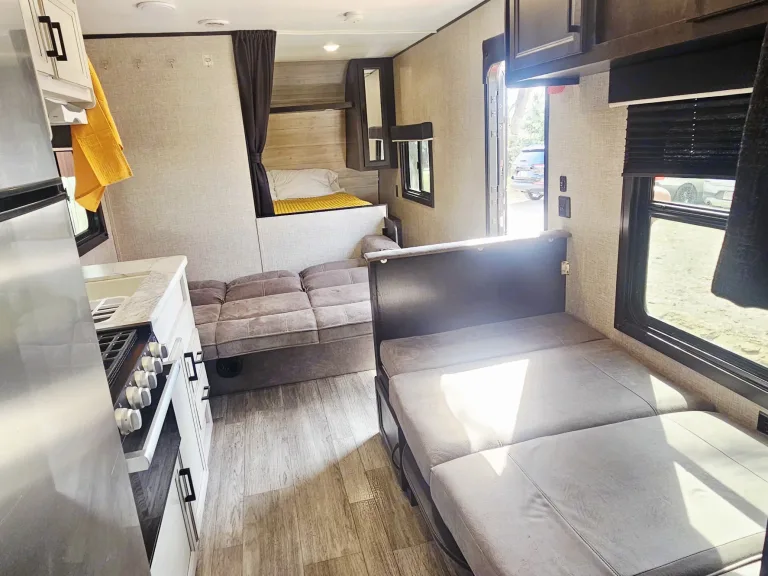 • This pet-friendly travel trailer is fully equipped for your next adventure.
