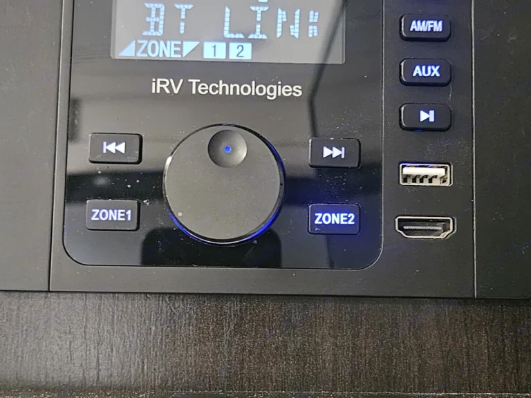 • Outdoor speakers and a power awning with LED lights extend your living space.