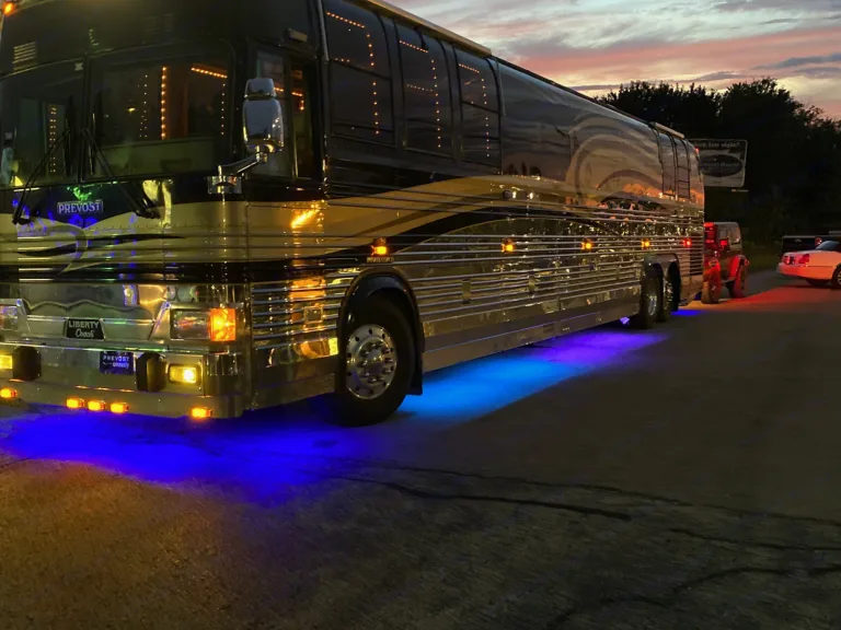 This is a beautiful, meticulously maintained Liberty Conversion Prevost Bus. Series 60 Detroit Diesel with low hours and a completely retrofit interior! Ce qui est inclusLinens, Chairs, Gas Grill, lower entrainment areaRecommandationsPerfect for corporate events travel, enjoying the wilderness, attending the big game etc..