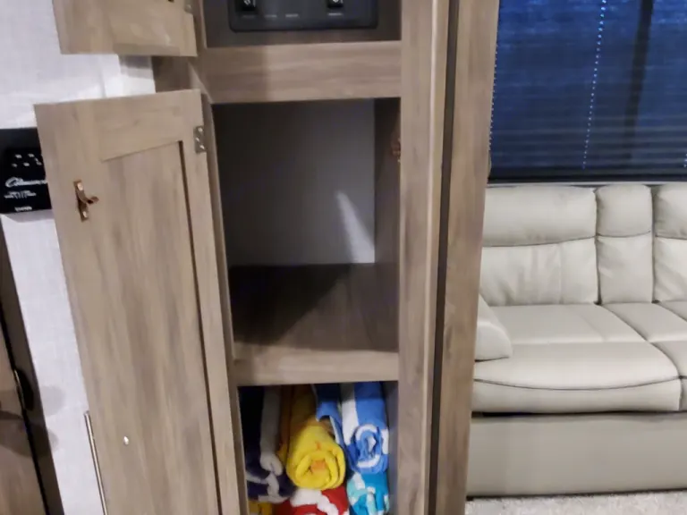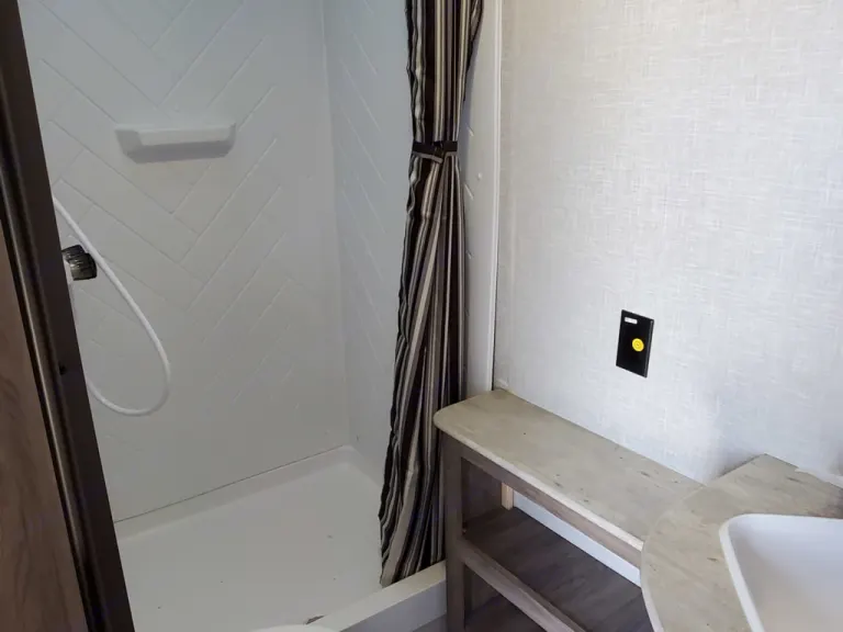 Beautiful travel trailer can sleep 8-10 people. Full kitchen & full bathroom. Double over double bunks. Dinette & sofa fold down for more sleeping arrangements. Outdoor kitchen with a mini fridge, small sink and two burner stove.Ce qui est inclusComes with complete bedding for the master bed. Pots & pans, cooking utensils. Paper plates, bowls & cups. Plastic utensils. Coffee pot & coffee. Beach towels.