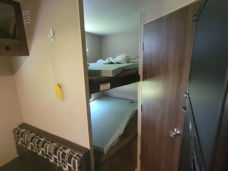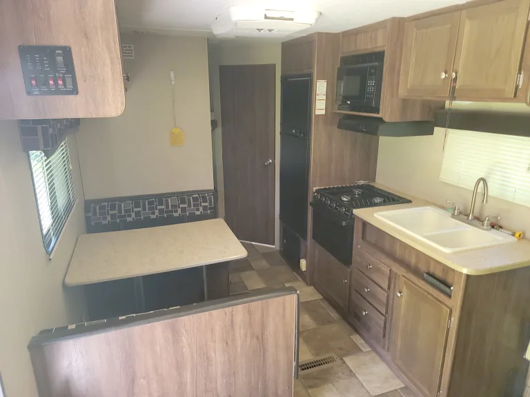 Come and enjoy the all the beautiful things nature has to offer with all the comforts of home in this fully functional trailer. The kitchen comes stocked with pots, pans, utensils, and a coffee machine. Plenty of cabinet space for all your must have camping food and we'll as a refrigerator, freezer, stove and oven. Sleep comfortably in a full queen size memory foam mattress. A side table and storage closet located on both sides of the bed provide a place for clothing. Plenty of sleeping room for kids and/or friends with a bunk bed with 3in memory foam pads. The table and couch also transform into beds for additional sleeping. Blankets and pillows provided. End the day with a nice warm shower in the full bathroom. Lots of storage located underneath the trailer. Bring all your fishing gear, swimming toys, chairs, outdoor games and coolers. Come camp in something the whole family can enjoy. Ce qui est inclus• Coffee maker