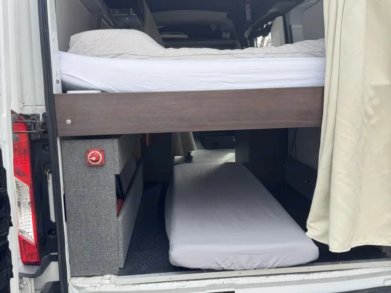 With strong insulation, and a dedicated webasto heater, the van works flawlessly year-round. Quality all-season tires and included chains keep you prepared for any conditions.Off-Grid Capabilities