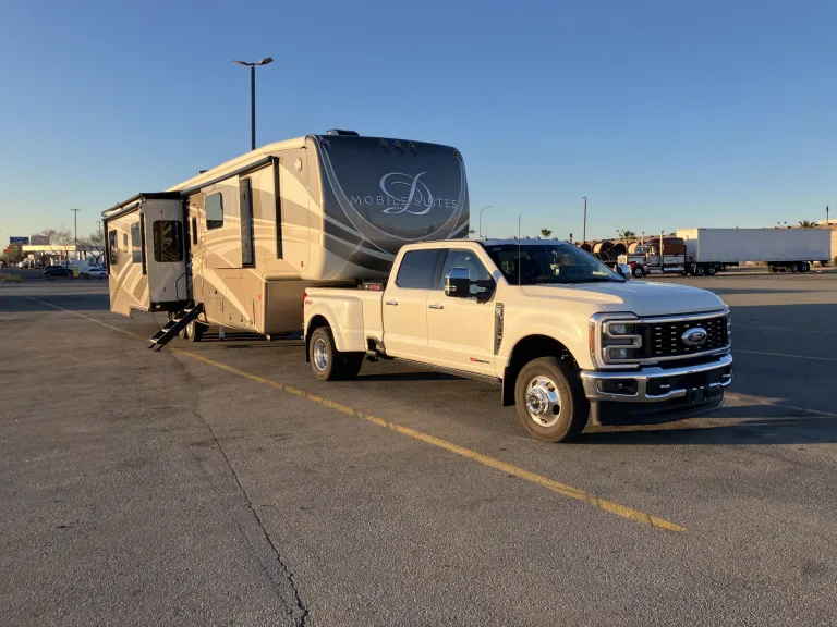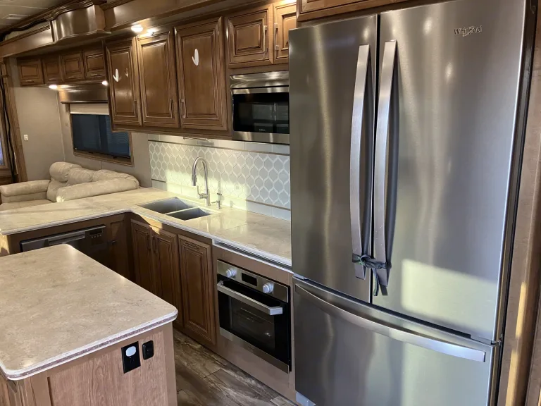 2018 Mobile Suites Santa Fe Luxury fifth wheel well appointed with all the comforts of home including a washing machine and dryer a sleek drawer style dishwasher and full size residential refrigerator also this home on wheels has a king size bed and all the storage you could ever want the fifth wheel is 46 feet long with granite countertops and hard wood everywhere. This beautiful fifth wheel boasts 4 slide outs for ample room to enjoy all the amenities this fifth wheel has to offer. This RV sleeps 4 the couch folds out into a full size bed. The unit is self contained with 100 gallon fresh tank 50 gallon black tank and 75 gallon grey tank with a 12 gallon gas and electric water heater for nice hot showers the unit has 3 air conditioners and two gas furnaces it requires a 50 amp electrical service sewer and water for full functionality. If glamping is what your looking for this Mobil Suites is the way to go!Ce qui est inclus• Toilet paper